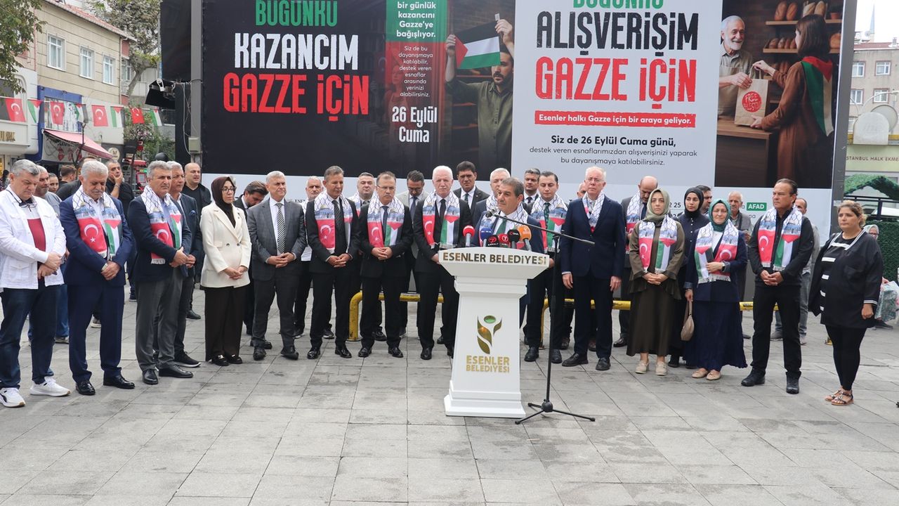 Esenler Belediyesi, "Bugünkü Kazancım Gazze İçin" ve "Bugünkü Alışverişim Gazze İçin" sloganıyla başlattığı proje ile ilçede faaliyet gösteren 15 bin 700 esnafı ziyaret ederek bir günlük kazançlarını Gazze için bağışlamaları çağrısında bulundu.