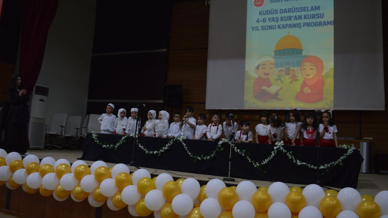 Siirt İl Müftülüğüne bağlı Kudüs Darüsselam 4-6 Yaş Kur’an Kursu öğrencileri, yıl boyunca aldıkları eğitimin ardından mezuniyet sevincini yaşadı.