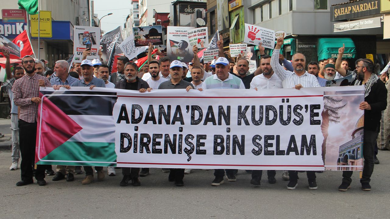 İnönü Parkı'nda toplanan halk, tekbirler ve sloganlar eşliğinde Beşocak Meydanı’na yürüdü. “Haydi Adana, Filistin için yürüyoruz” çağrısıyla gerçekleşen yürüyüşe vatandaşlar büyük ilgi gösterdi. Katılımcılar, Filistin bayrakları ve dövizlerle Gazze halkının direnişine destek verdiklerini gösterdi.