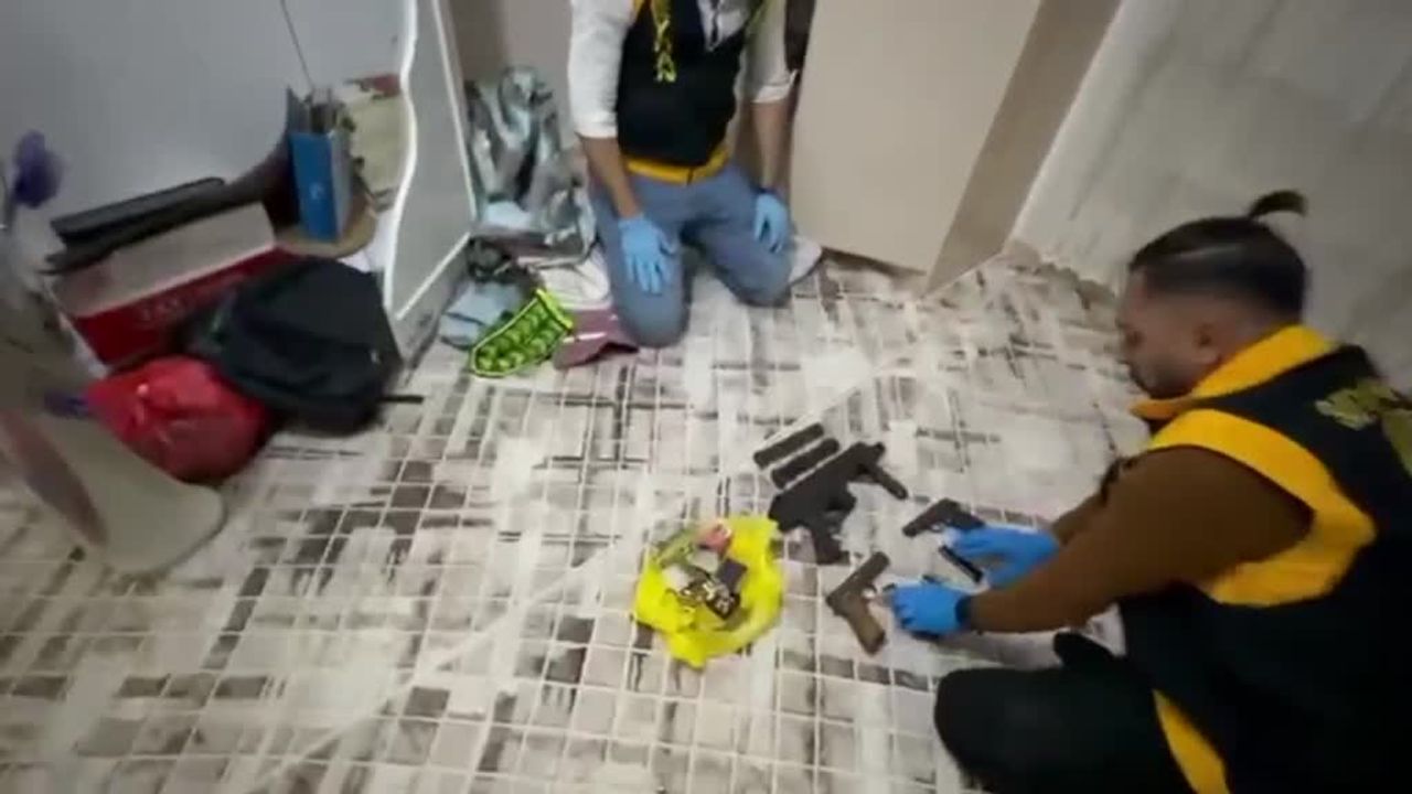 Yapılan aramada ruhsatsız biri otomatik 3 tabanca, 81 mermi ve 5 şarjör ele geçirildi.