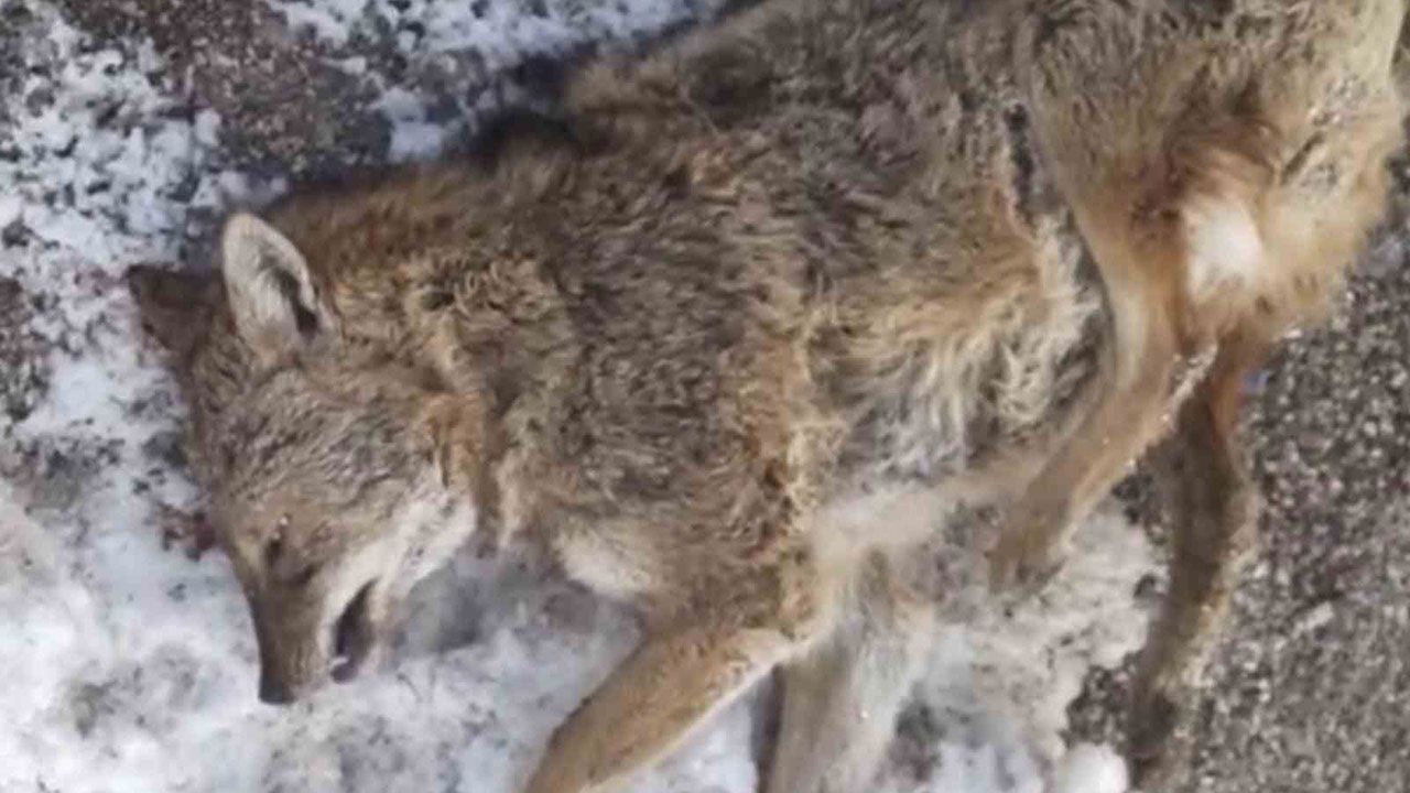 Ölen kurt araç sürücüsü tarafından yol kenarına alındı.