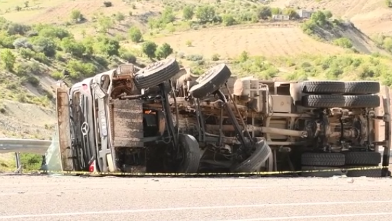 Murat Sağdıç idaresindeki 60 AE 220 plakalı kamyon, Besni-Adıyaman kara yolunun 3. kilometresinde devrildi.