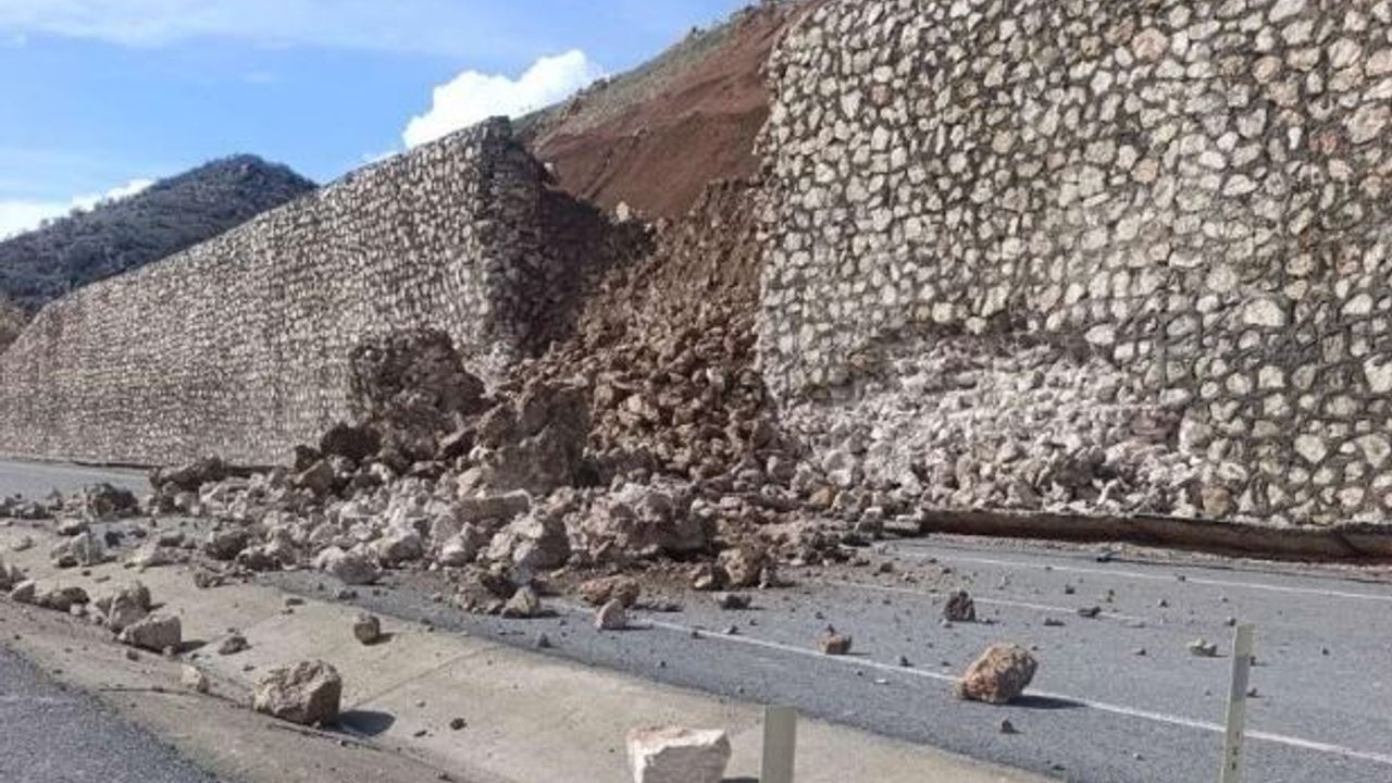 Edinilen bilgilere göre, Kahta-Diyarbakır Karayolu Ballı Köyü mevkiinde yaklaşık iki haftadır etkili olan yağışlar nedeniyle istinat duvarı çöktü.