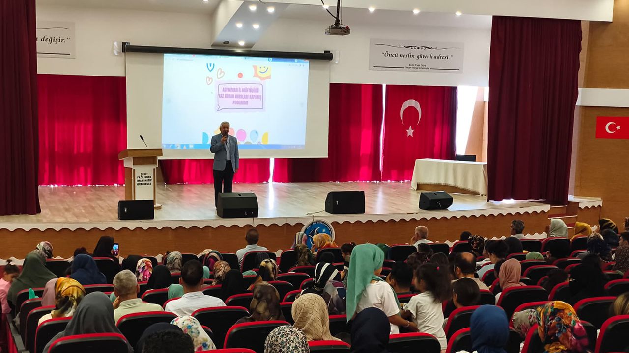 Müftü Haliloğlu, "Adıyaman Müftülüğü olarak camilerimizde ve Kur'an kurslarımızda, din görevlilerimizin ve Kur'an kursu öğreticilerimizin rehberliğinde başta temel dini bilgiler olmak üzere çeşitli sosyal etkinlikler de yapıldı. En büyük amacımız; sizlerin gelecekte daha iyi bir insan olma, vatanına milletine bağlı bireyler olmanız için gayret göstermektir. 30 Haziran 2025 tarihinde başlayan Kur'an kursları 15 Ağustos 2025 tarihinde sona ermiştir. Başta aileleriniz olmak üzere emeği geçen tüm din görevlisi ve Kur'an kursu öğreticilerine teşekkür ediyorum." ifadelerini kullandı.