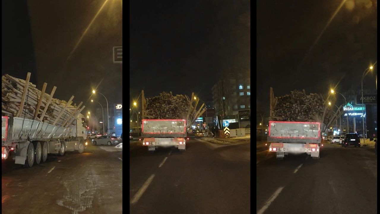 Diyarbakır'da dün akşam saatlerinde Şanlıurfa Bulvarı üzerinde seyir halindeki ağaç yüklü bir tır, trafikte tehlikeli görüntüler oluşturdu.