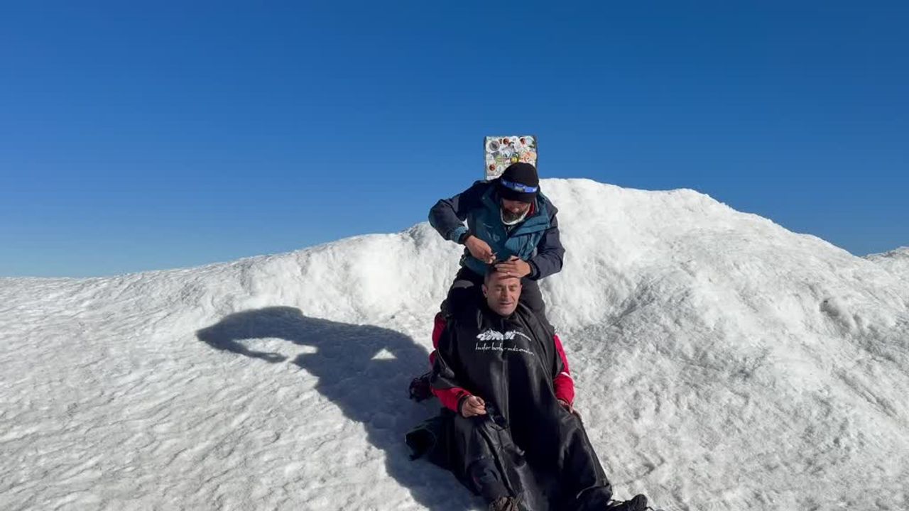 Dağcı Serkan Üç ise “Hangi dağın zirvesine gidersen git, o zirveye gelir tıraş olurum.” ifadelerini kullandı.