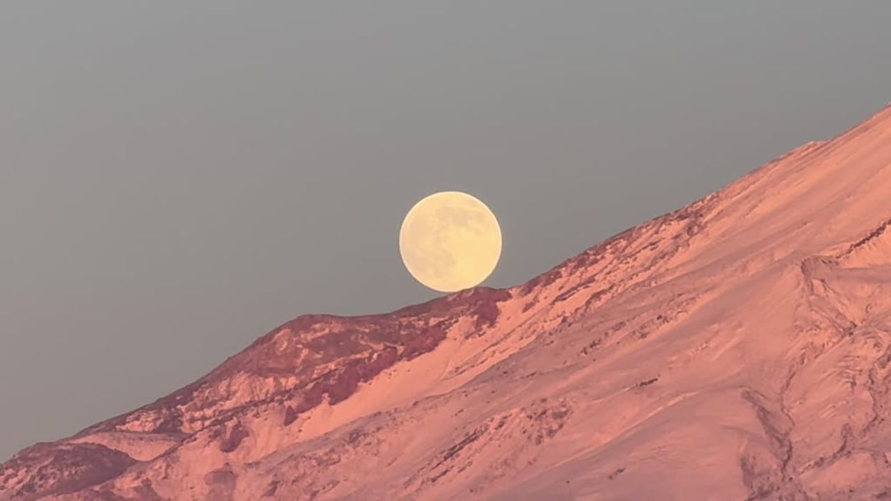 Türkiye’nin en yüksek noktası olan Ağrı Dağı, dolunayın arkasından yükselmesiyle birlikte etkileyici görüntüler oluşturdu.