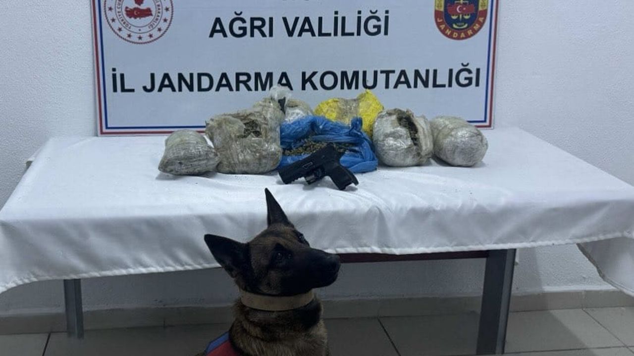 Ağrı Valiliğinin sosyal medya hesabından yapılan paylaşıma göre, operasyonda 4 kilo 198 gram kubar esrar ile 1 adet ruhsatsız tabanca ele geçirildi.