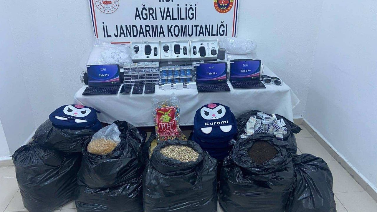 Ağrı İl Jandarma Komutanlığına bağlı Kaçakçılık ve Organize Suçlarla Mücadele Şube Müdürlüğü ve Doğubayazıt İlçe Jandarma Komutanlığı ekipleri tarafından; yol kontrol ve arama noktasında durdurulan araçlarda yapılan aramalarda gümrük kaçağı; 480 paket sigara, 186 adet cam züccaciye malzemesi, 3 adet tablet, 3 adet cep telefonu, 81 adet çocuk okul çantası, 126 kg çay, 102 kg İran fıstığı, 38 kg kuru üzüm ve çok sayıda muhtelif ürünler ele geçirildi.