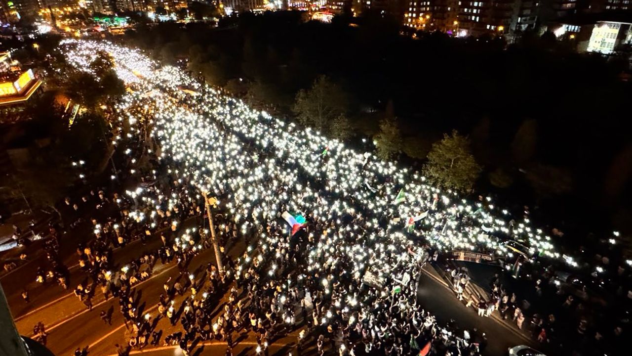 Merkez Kayapınar ilçesindeki Dünya Kavşağı'nda toplanan on binlerce Diyarbakırlı, ellerinde Filistin bayrakları ve dövizlerle tekbirler eşliğinde Roboski Park alanına yürüdü.