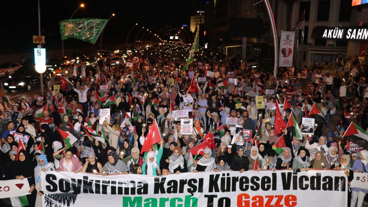 Ankara Filistin Dayanışma Platformu (ANFİDAP) öncülüğünde düzenlenen Küresel Vicdan Yürüyüşü (Global March to Gaza) kapsamında, Ankaralılar Kocatepe Camii’nden Mısır Büyükelçiliğine yürüyerek Gazze’ye destek verdi.