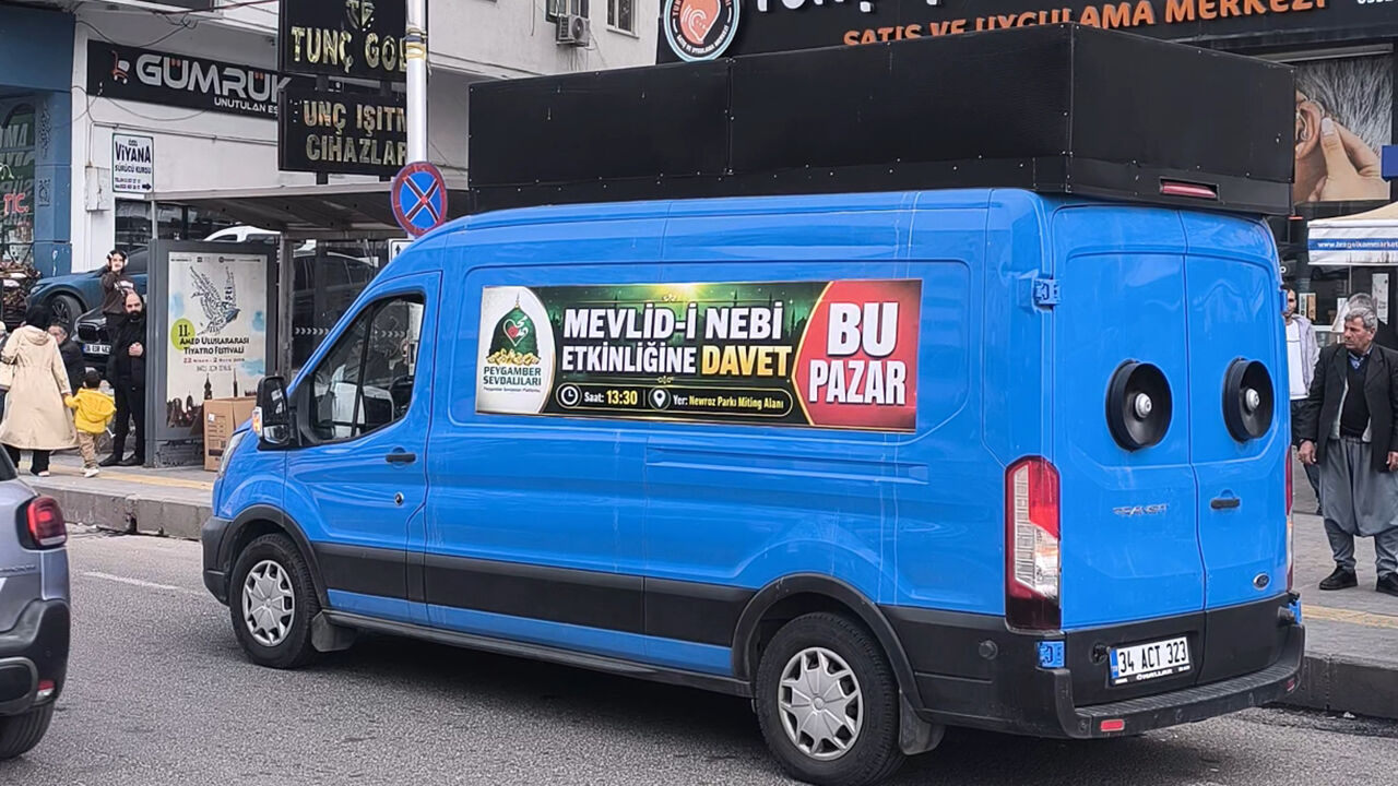 Peygamber Sevdalıları Vakfı tarafından Diyarbakır'da düzenlenecek "Vahdet ve Kurtuluş Önderimiz Hazreti Muhammed" temalı Mevlid-i Nebi etkinliği öncesinde, vatandaşları programa davet etmek amacıyla anons araçları kentin dört bir yanında gezmeye başladı.