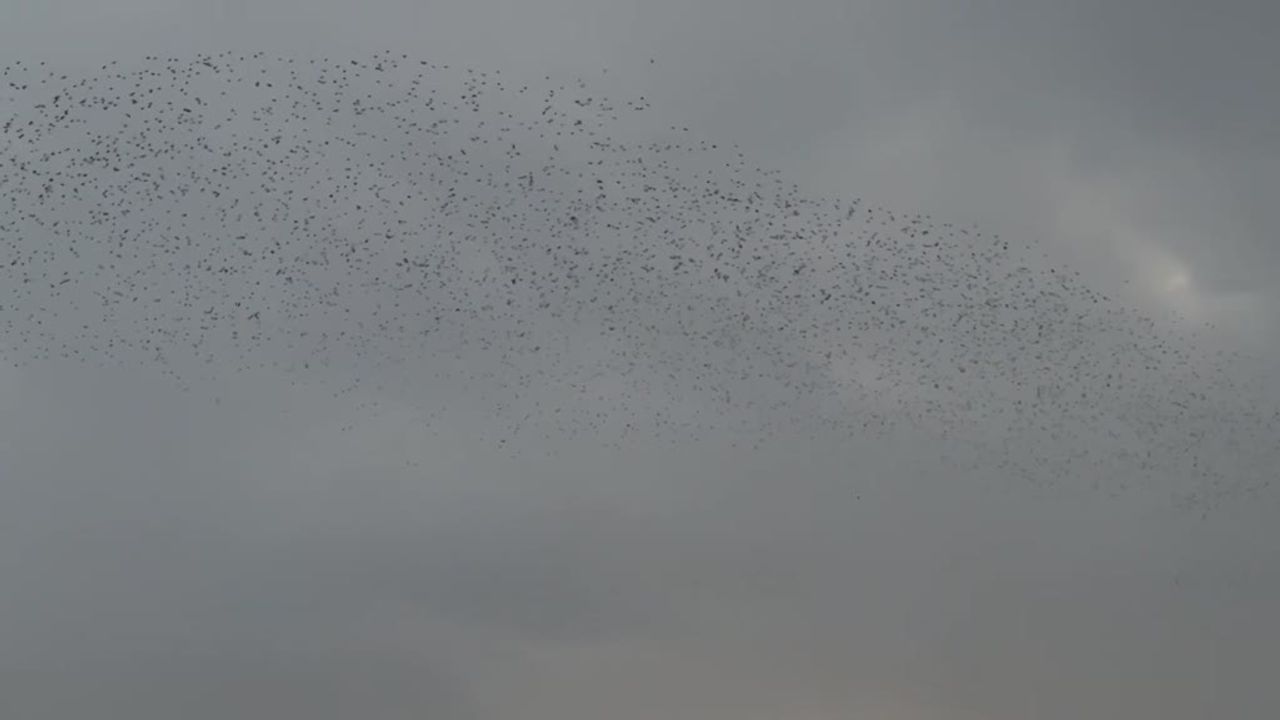 Kuş sürüsünün sergilediği bu görsel dans dakikalarca sürdü. Ardından sürü yavaş yavaş uzaklaşarak gözden kayboldu.