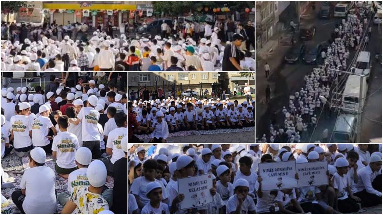 Diyarbakır'ın merkez Bağlar ilçesinde düzenlenen "Hayat Namazla Güzeldir" etkinliği kapsamında bir araya gelen çocuklar, ellerindeki "Namaz ruhun gıdasıdır, Secde et Rabbine yaklaş, Nımêj ronahiya çavê mın e" gibi dövizlerle Balar sokaklarında yürüyüşe geçti.
