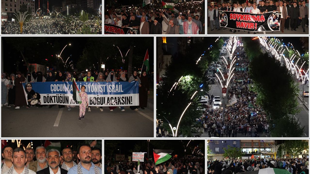 "Çocukların, kadınların, yaşlıların hedef alındığı, ibadethanelerin, okulların, sığınma alanlarının bilinçli şekilde vurulduğu her saldırı birer savaş suçudur. Bu suçlara göz yuman, görmezden gelen, çifte standartla hareket eden herkes, bu insanlık suçunun ortağıdır. Gazze artık bir şehir değil bir hapishane, bir yetimhane, bir mezarlık halini almıştır. Gıda yok, temiz su yok, elektrik yok, ilaç yok. Buna rağmen Gazze, direnişin, cihadın, izzetin ve şerefin simgesidir. Orada insanlık onuru dimdik ayaktadır. Her şeye rağmen teslim olmayan, diz çökmeyen bir halk var. İşte biz o halkın yanındayız. Bugün burada attığımız her slogan, taşıdığımız her pankart, sadece dayanışmanın değil; yerine getirmekten aciz kaldığımız sorumluluklarımızın da ifadesidir. Bizler, İslam medeniyetinin mirasçıları olarak susamayız, evimizde duramayız. Filistin’de yaşananlar sadece bir halkın değil, tüm insanlığın sınavıdır. Ve biz bu sınavda zalimin karşısında, mazlumun yanında saf tutmayı şeref biliriz. Yaşanan bu zulme ortak olmak, insanım diyen kimseye yakışmaz. Bu yüzden sokaklara döküldük ve her çağrıda dökülmeye devam edeceğiz. Gazze'de zulme uğrayan kardeşlerimizin yaralarına çare olana dek desteklerimizi sürdüreceğiz."