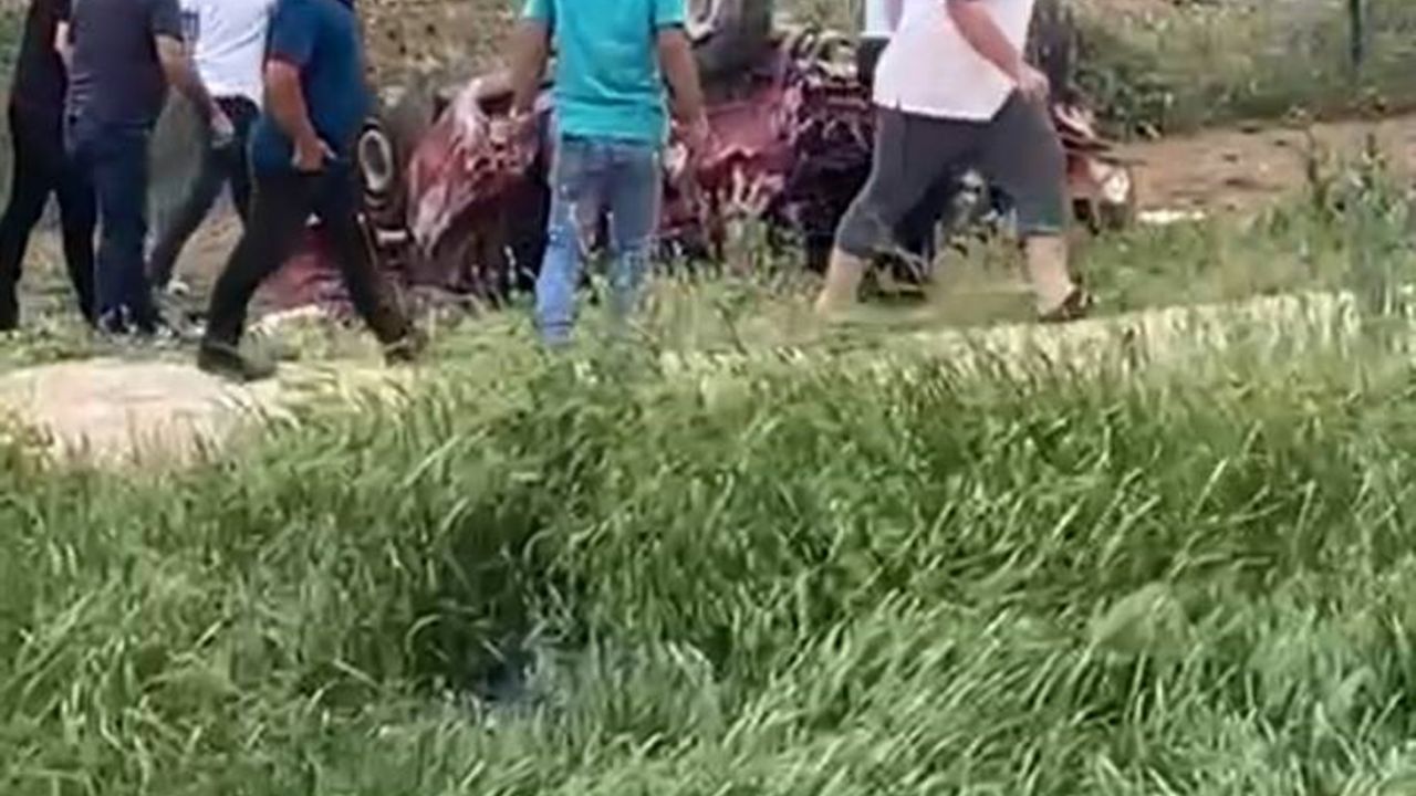 Araç, takla atması sonucu yolun kenarındaki tarlaya uçtu.