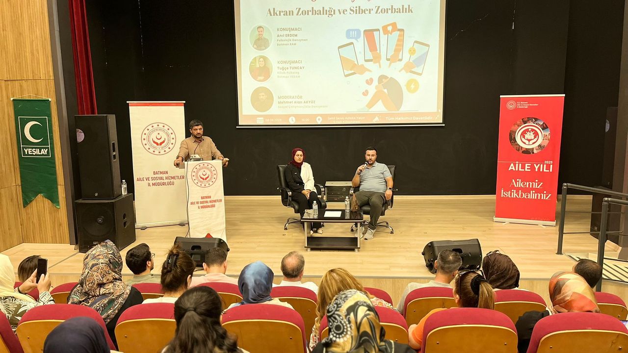 Batman Yeşilay Danışmanlık Merkezi Klinik Psikoloğu Tuğçe Tuncay, yaptığı sunumda çocukları siber zorbalıktan korumak için ekran kullanımının yaşa ve süresine dikkat edilmesi gerektiğini belirtti.