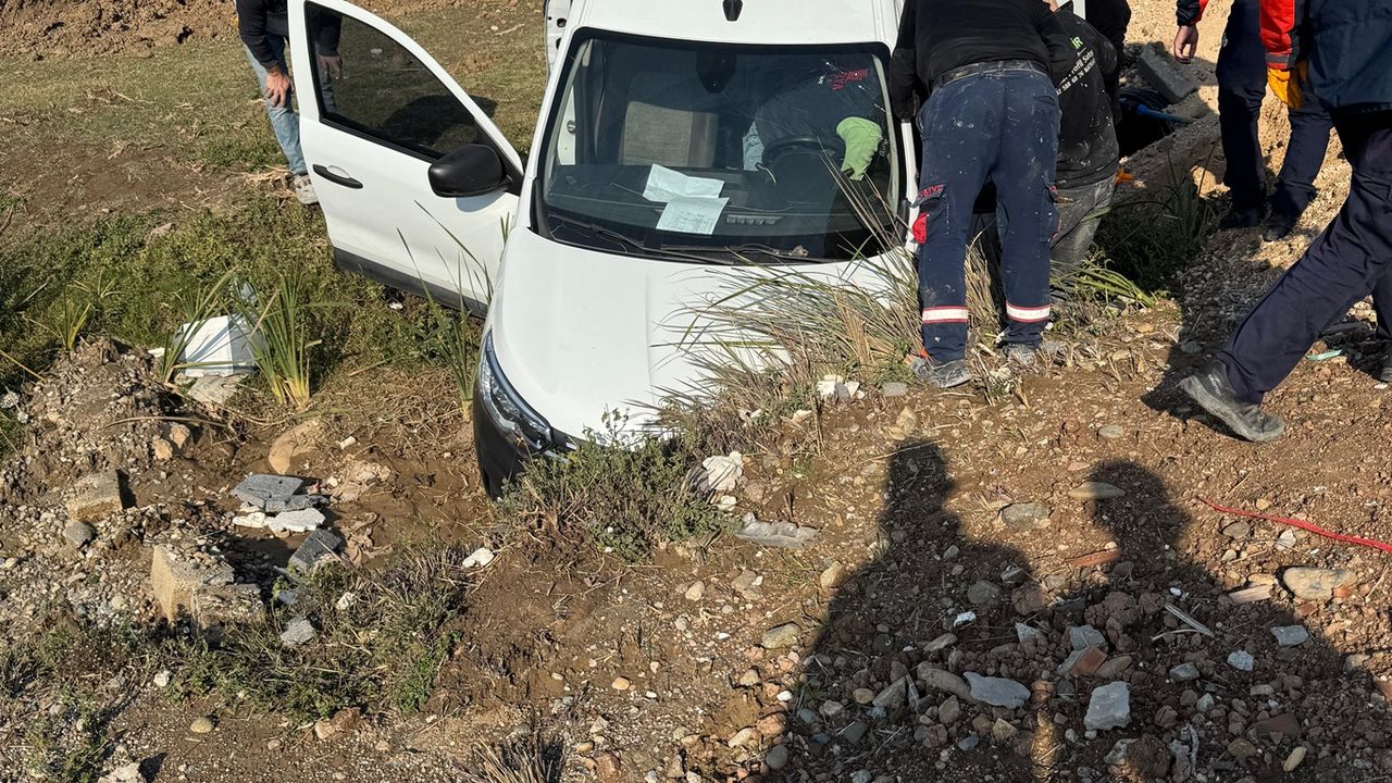 Edinile bilgiye göre, direksiyon hâkimiyetini kaybeden hafif ticari araç sürücüsü yol kenarındaki kanala düştü.