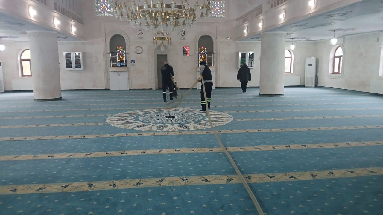 Belediyeden yapılan açıklamaya göre, yürütülen çalışma kapsamında cami, mescit ve Kur'an kurslarının halıları temizleniyor.