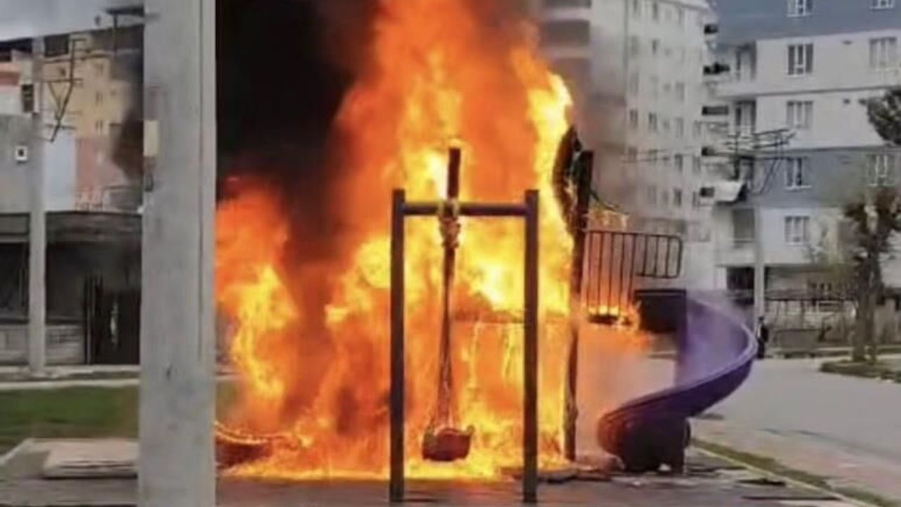 Yangın, Batman Cudi Mahallesi’nde bulunan bir çocuk parkında meydana geldi. Edinilen bilgilere göre, parkta bulunan plastik kaydırak henüz bilinmeyen bir nedenle yanmaya başladı. Alevleri fark eden vatandaşlar durumu hemen 112 Acil Çağrı Merkezi’ne bildirdi.
