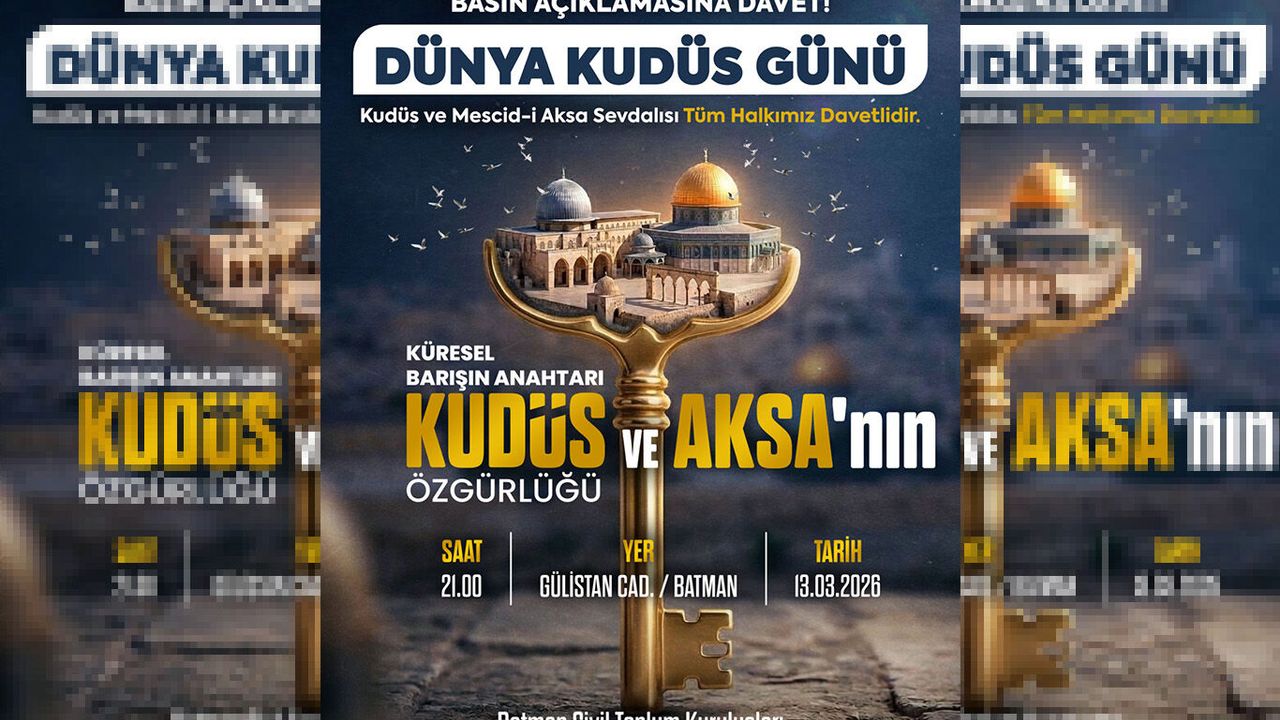 Batman Sivil Toplum Kuruluşları tarafından yapılan çağrıda, "Kudüs ve Mescid-i Aksa sevdalısı tüm halkımız davetlidir." ifadelerine yer verildi. Açıklamada ayrıca "Küresel barışın anahtarı Kudüs ve Aksa'nın özgürlüğüdür." mesajı paylaşıldı.