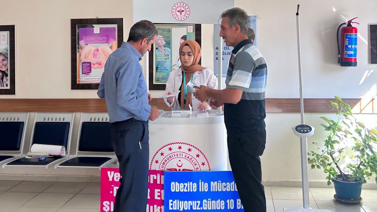 Yücebağ Aile Sağlığı Merkezi önünde açılan stantta vatandaşların şeker, boy ve kilo ölçümleri yapıldı.