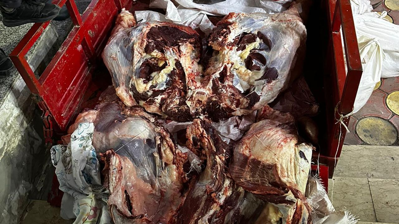 Ele geçirilen etler imha edilmek üzere toplatıldı.