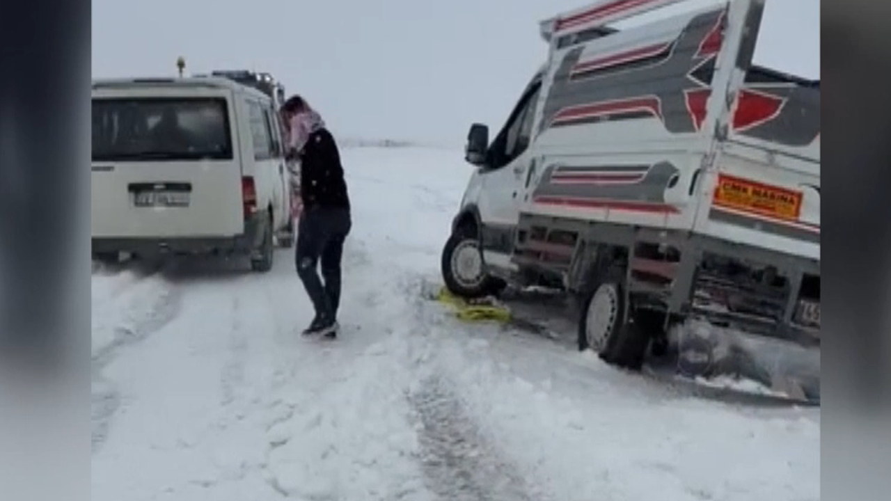 Merkeze bağlı Akoba köyünde kamyonetiyle yolda mahsur kalan Bilal Sonğur, köylülerden yardım istedi.