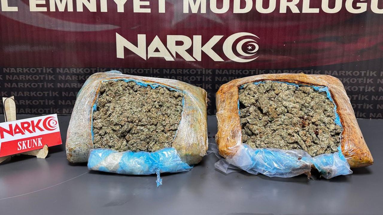 Yapılan aramada, şahsın üzerinde ve eşyalarında 2 kilo 500 gram skunk uyuşturucu maddesi ele geçirildi.