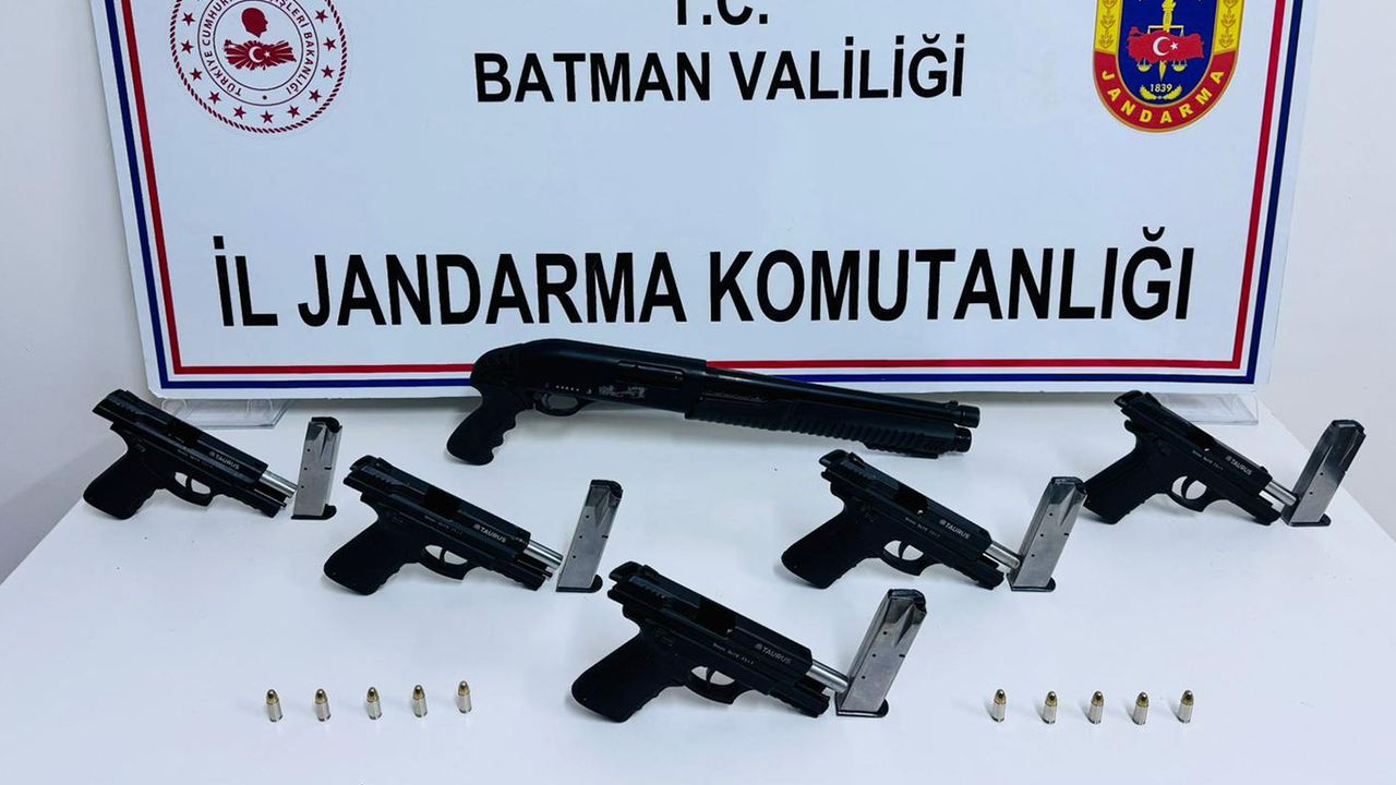 İl Jandarma Komutanlığı, Kaçakçılık ve Organize Suçlarla Mücadele (KOM) Şube Müdürlüğü ekipleri tarafından gerçekleştirilen arama faaliyetinde, 5 ruhsatsız tabanca, 5 tabanca şarjörü, 10 adet 9 milimetre çapında fişek ve bir ruhsatsız av tüfeği ele geçirildi.