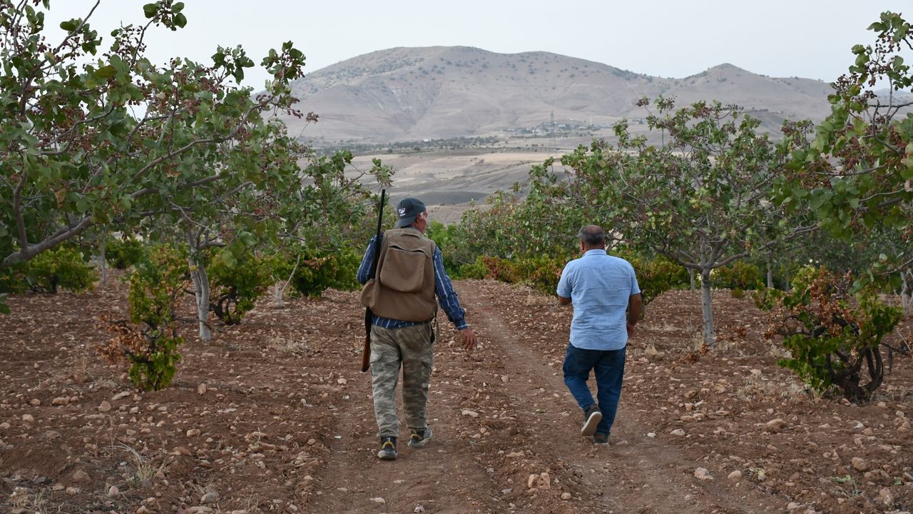 Gezer, "Bazı yerlere de ışık sistemi yerleştirdik ayrıca tarlada av tüfekleri ile nöbet tutuyoruz. Çiftçiyiz, çalışıyoruz. Her gün nöbet tutmak da zordur. Şu anda fıstık ve üzüm nöbeti tutuyoruz. Hasadın ardından nöbetimiz de bitecek." ifadelerini kullandı.