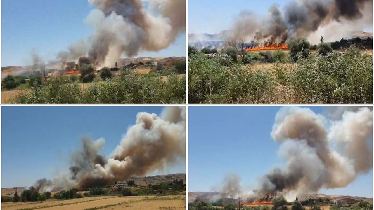 Alevlerin, çevredeki buğday ve arpa tarlalarına da zarar verdiği bildirildi.