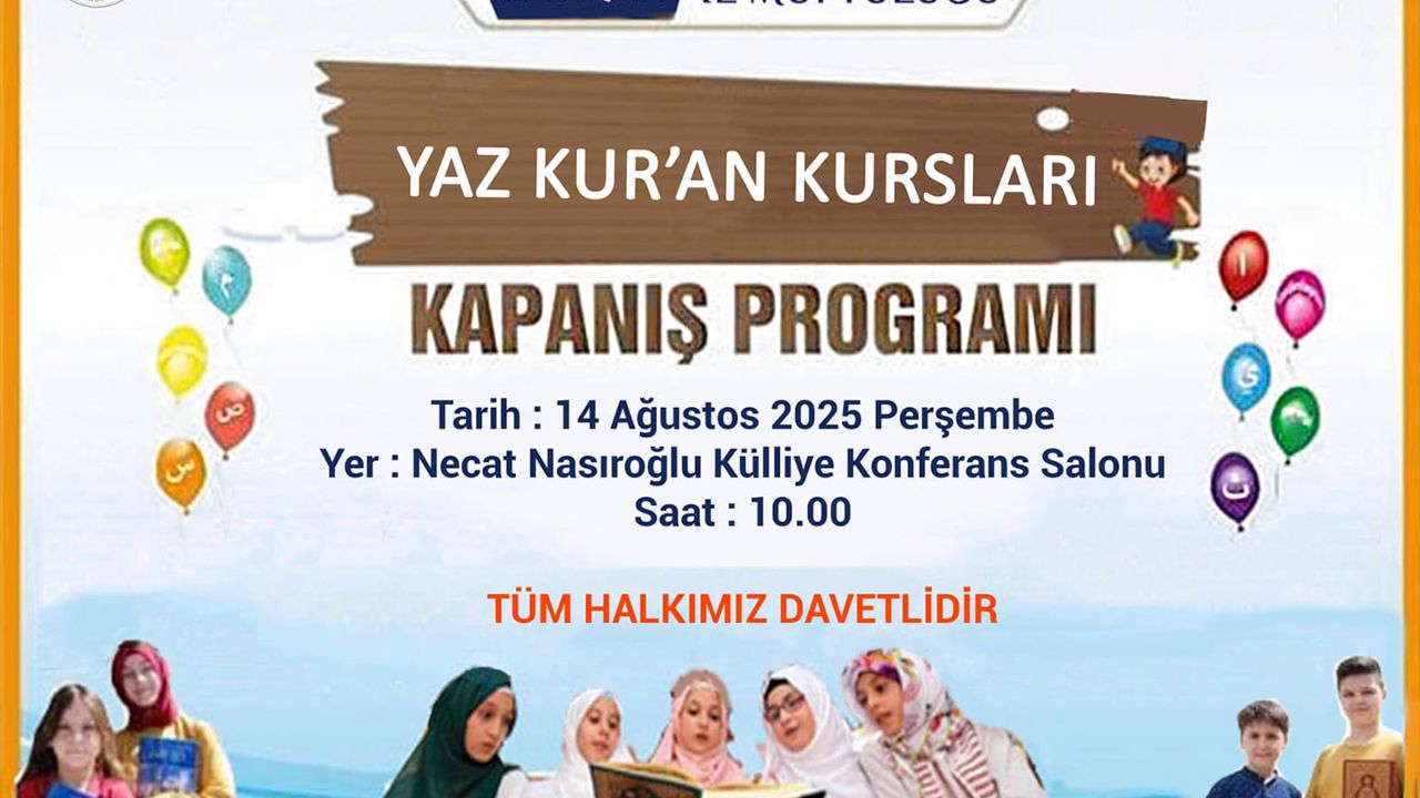 Batman Müftülüğü, 2025 yılı Yaz Kur’an Kurslarının kapanış programını 14 Ağustos Perşembe günü saat 10.00’da Necat Nasıroğlu Külliyesi Konferans Salonu’nda düzenleyecek.