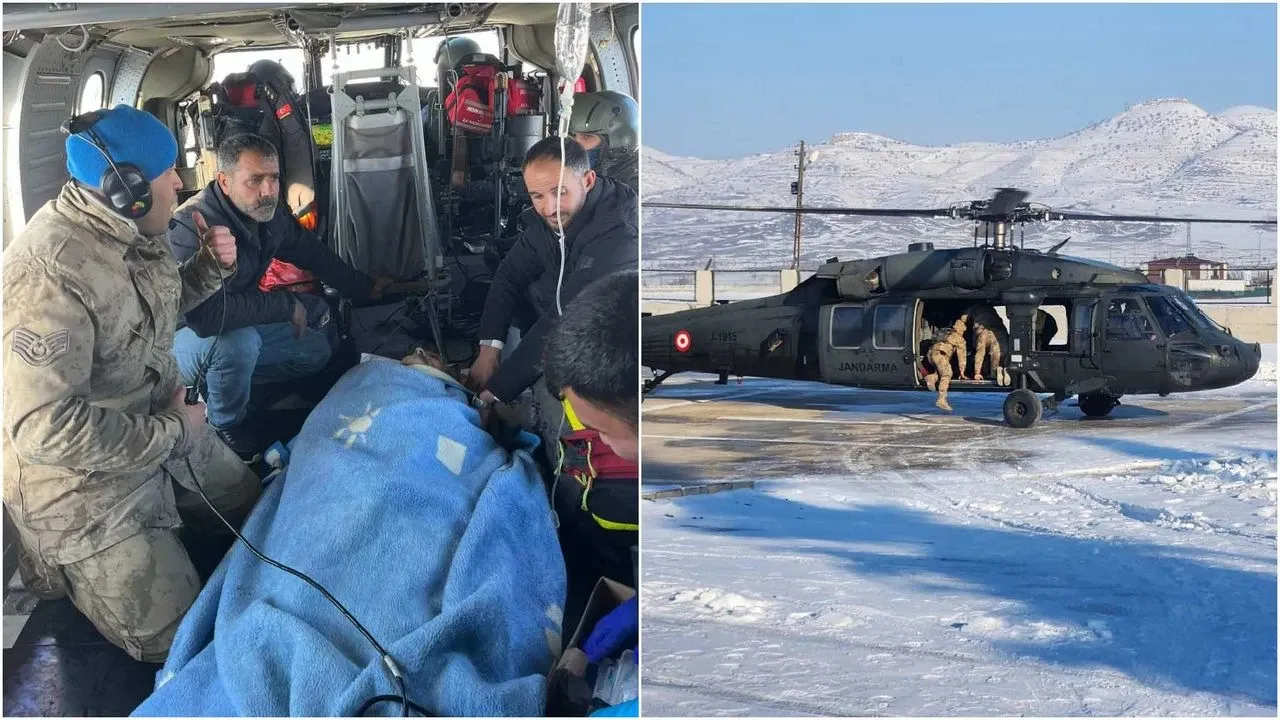 Bölgeye ulaşan helikopterle köye inen sağlık ve jandarma ekipleri, ilk müdahalenin ardından hastayı aldı.