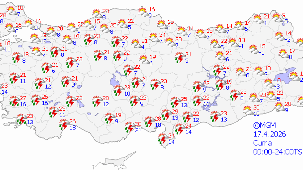 Gündüz-gece sıcaklık farkının en yüksek olacağı gün bugün olarak öne çıkıyor (16°C / 5°C).