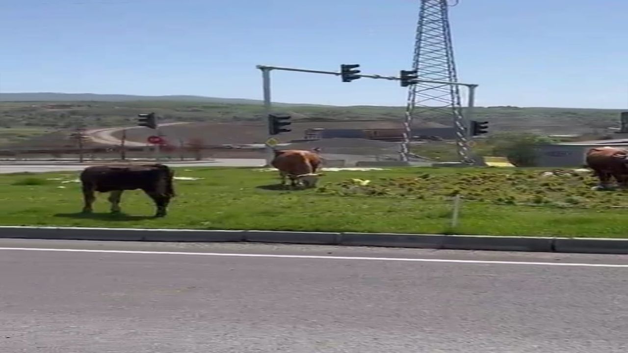 Özellikle yol ortasında bulunan refüjlerde otlanan hayvanlar, sürücülerin dikkatini dağıtarak olası kazalara zemin hazırlıyor.
