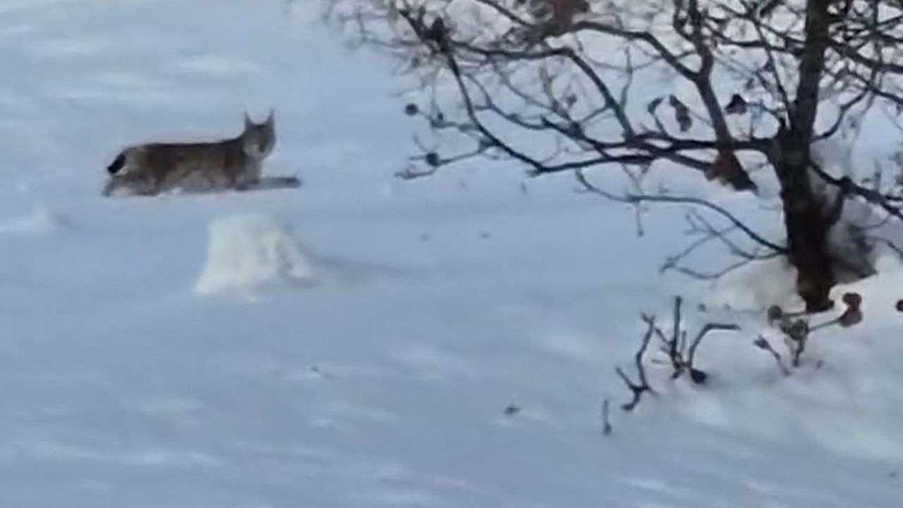 Vaşağı gören vatandaşlar, nadir görülen bu yaban hayvanını cep telefonlarıyla kaydetti.