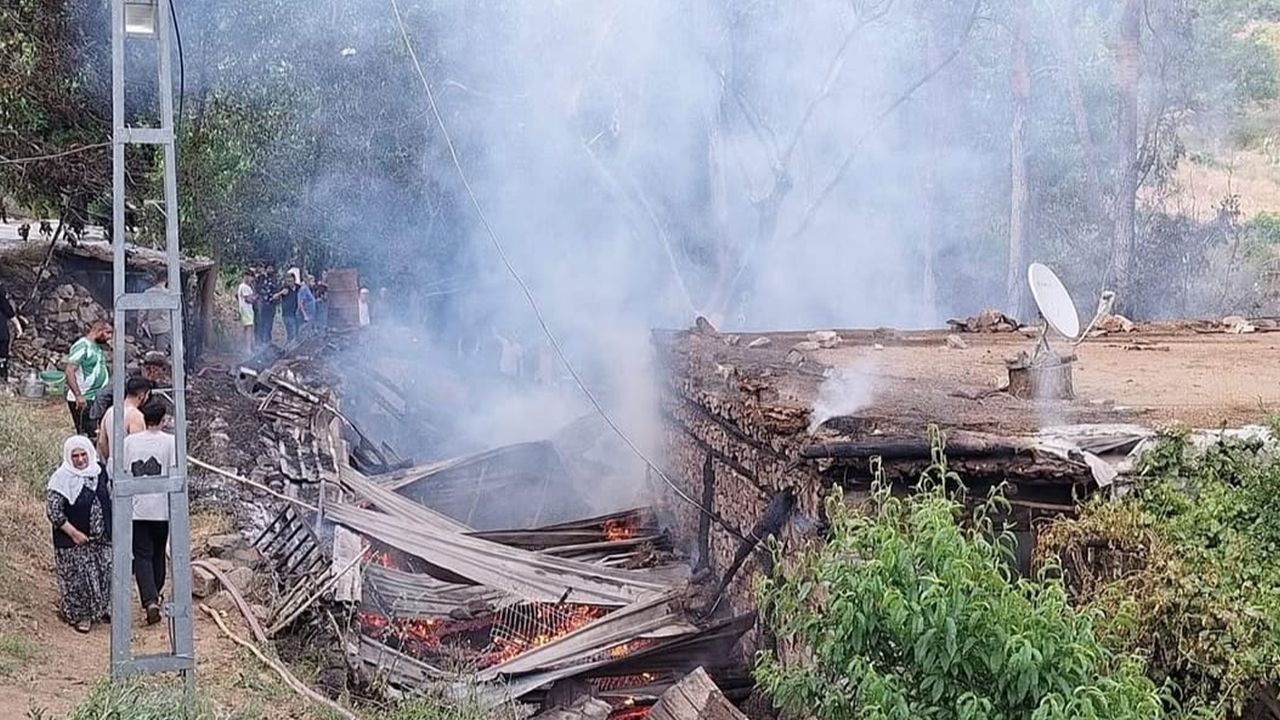 Yangın, rüzgârın etkisiyle hızla yayılarak mezrada bulunan bir eve de sıçradı.