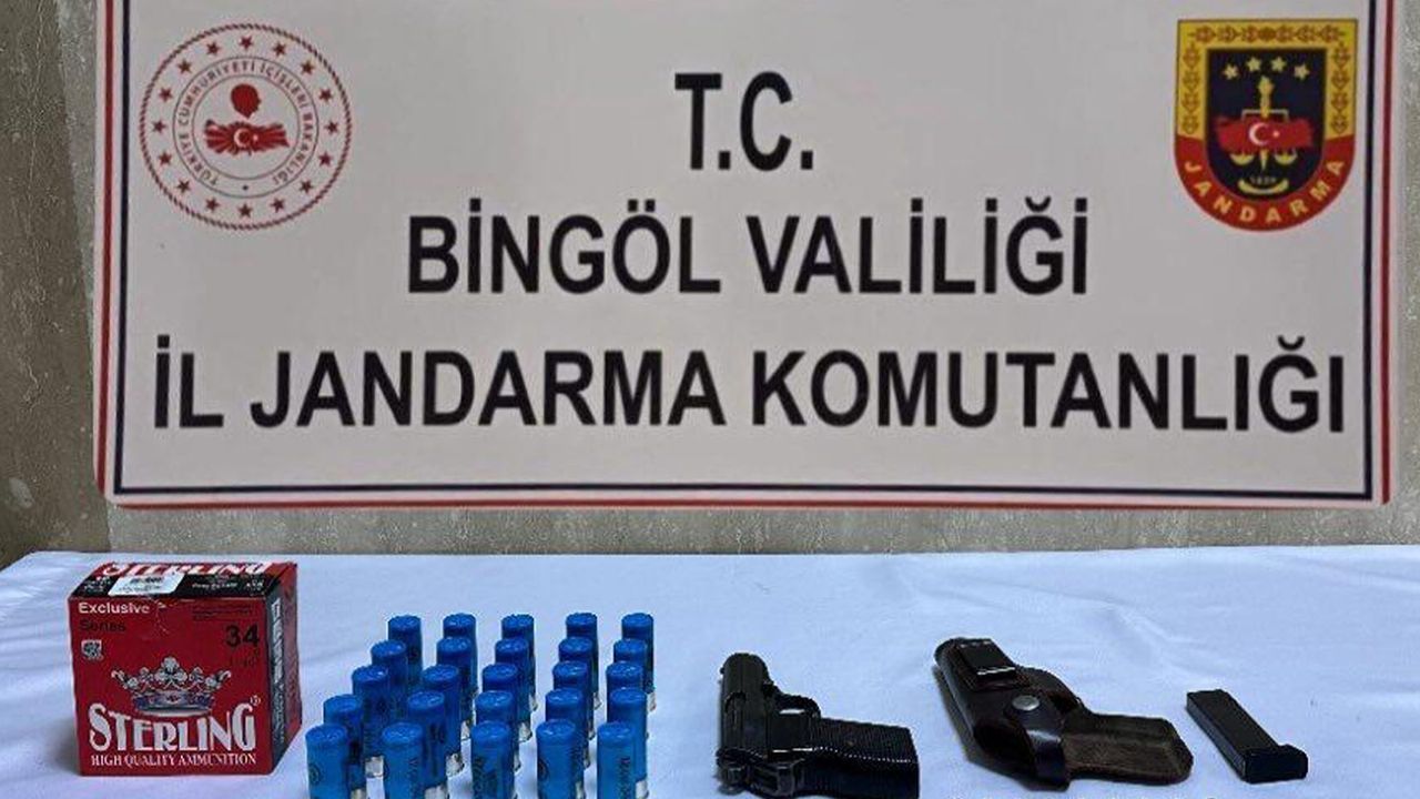 Yapılan aramalarda: 1 adet tabanca, 9 adet 7.65 mm çapında tabanca fişeği, 1 adet şarjör, 25 adet av tüfeği fişeği bulundu.