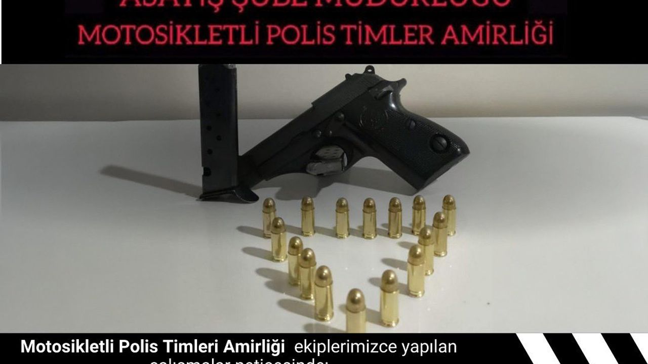 Bingöl Emniyet Müdürlüğü Asayiş Şube Müdürlüğü Motosikletli Polis Timleri Amirliği ekipleri tarafından yapılan çalışmalar neticesinde; 1 adet 'Ruhsatsız Tabanca', 2 adet 'Şarjör', 16 adet 9 mm çapında fişek ele geçirildi.
