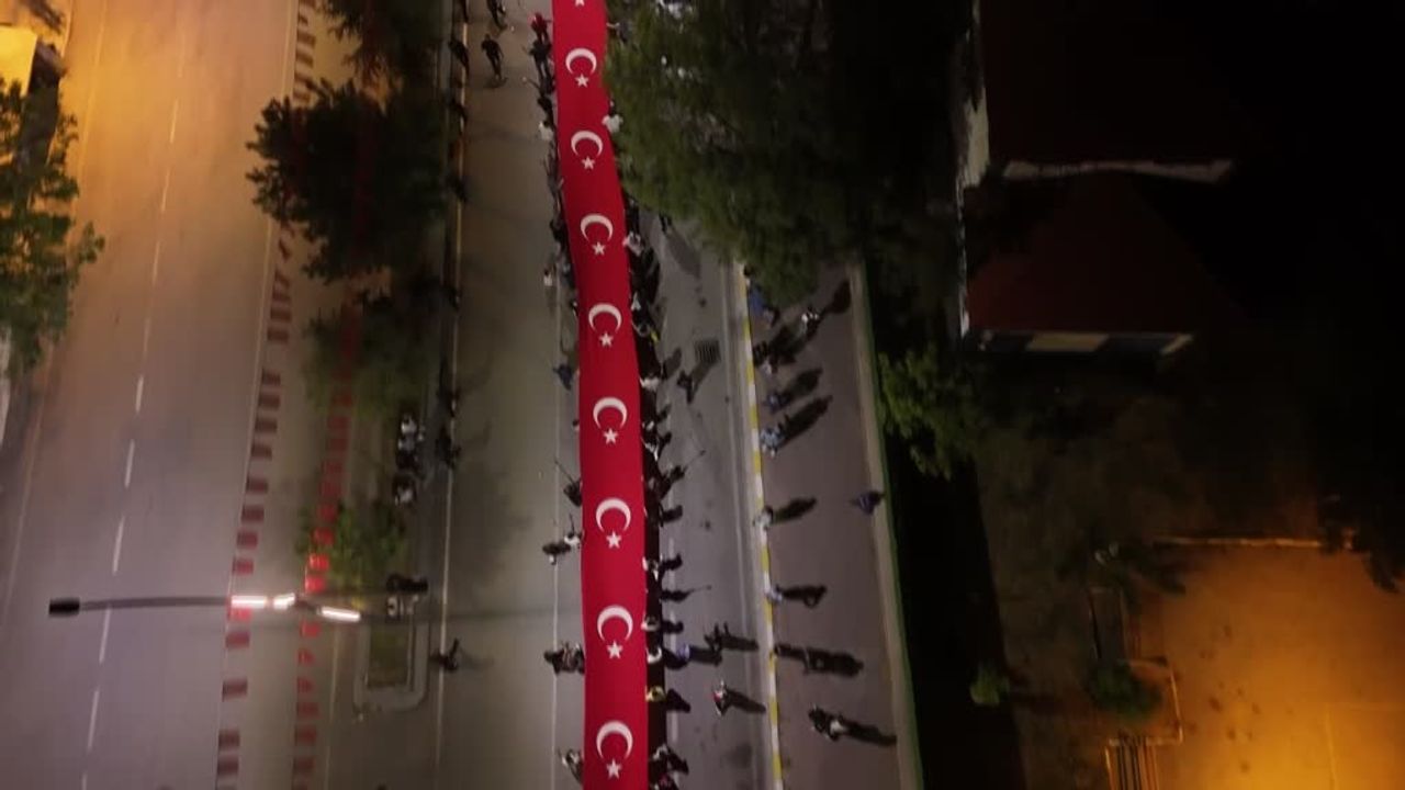 Ahlat Halk Eğitimi Merkezi Müdürlüğü önünde bir araya gelen vatandaşlar, metrelerce uzunluğundaki Türk bayrağı ve meşalelerle yürüyüşe başladı. Atlı polisler, jandarma ve polis motosiklet ekiplerinin eşlik ettiği kalabalık, Ulu Cami önüne kadar yürüdü.