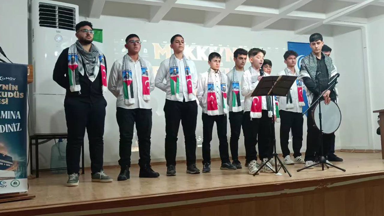 Programda ilahiler, sinevizyon sunumu ve kum sanatı performansları yer aldı.