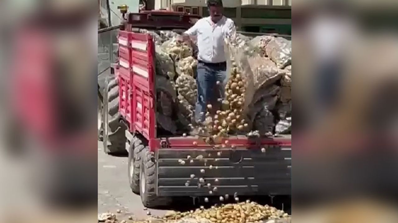 Aydıncık ilçesine bağlı Kazankaya köyünde çiftçilik yapan S.E, ürettikleri patates ve soğanın maliyetinin altında bile alıcı bulamadığını ileri sürerek bir traktör dolusu patatesi köy meydanına döktü.