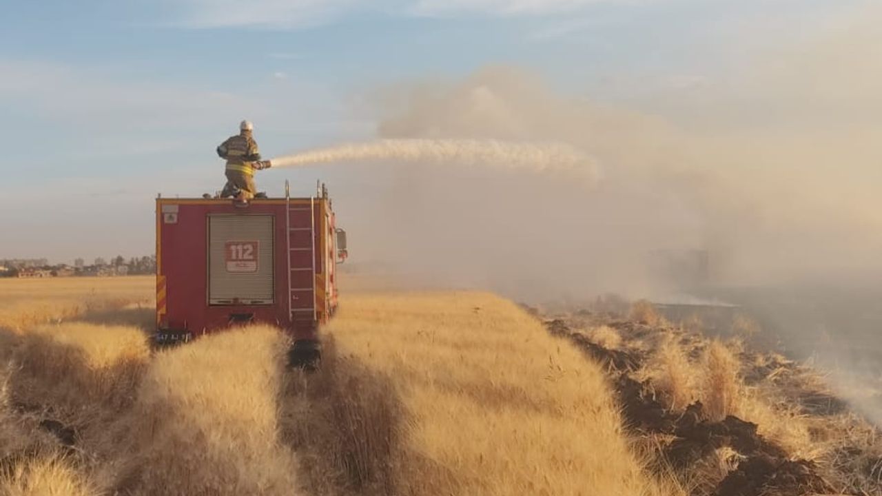 Kırsal Mezopotamya ile Esenli mahallelerinde henüz belirlenemeyen nedenle buğday ekili alanlarda yangın çıktı.