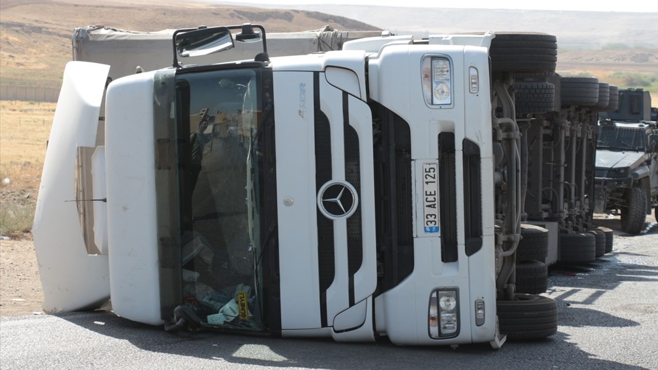 Sürücüsünün kimliği henüz öğrenilemeyen 33 ACE 125 plakalı tır, Cizre-Silopi kara yolunda kontrolden çıkarak devrildi.