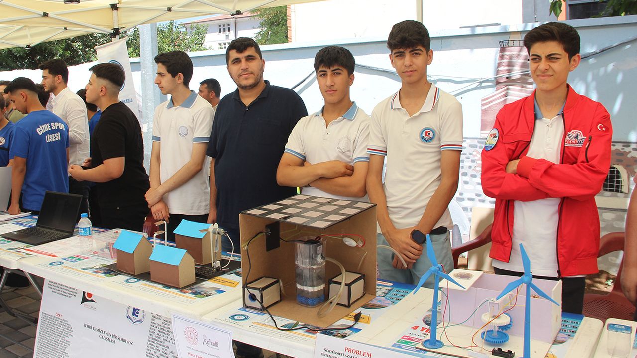 Cizre'de Özel Bilim Teknik Koleji'nin sanat sokağında düzenlemiş olduğu "Geleceğin Dâhileri bilim Proje" yarışmasına ilçede faaliyet gösteren lise ve ortaokullarda eğitim gören öğrenciler, projelerini sergiledi.
