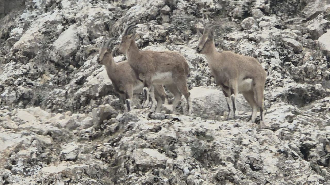 Doğal yaşam alanı olan yüksek kesimlerde beslenen dağ keçilerinin rahat tavırları dikkat çekerken, zaman zaman kayalıklar arasında ilerledikleri görüldü.