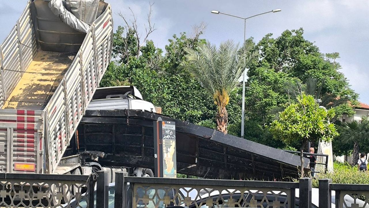 Açık vaziyette ilerleyen damper, güzergâh üzerindeki yaya üst geçidine çarptı.