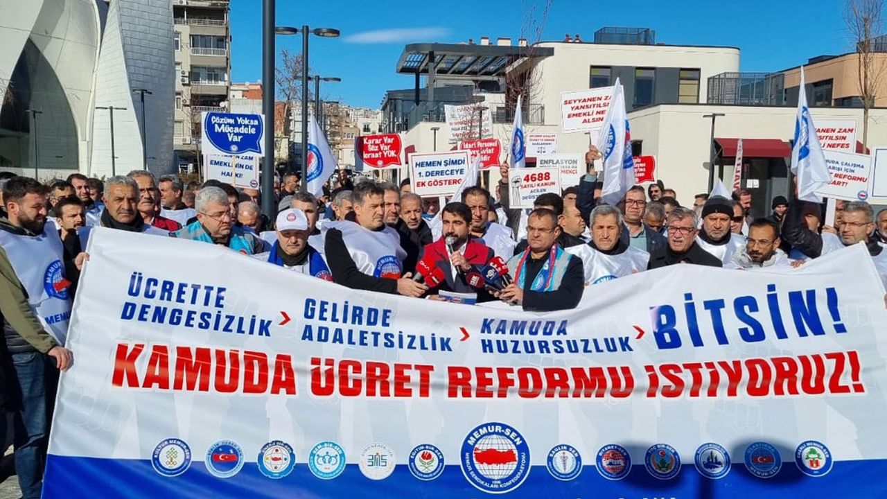 Ücrette dengesizlik, gelirde adaletsizlik ve kamuda huzursuzluk yaşandığı vurgusu yapılan basın açıklamasına Memur-Sen Konfederasyonuna bağlı hizmet kolu sendikalarının temsilcileri ve üyeleri ile birlikte kamu çalışanları katıldı.