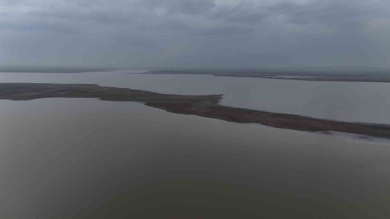 Devegeçidi Baraj Gölündeki su seviyesi, kış aylarında düşen kar ve yağmur yağışlarıyla yükselmişti. Bir ay önce çekilen dron görüntülerinde bazı bölgelerde kara parçaları görülmüştü.